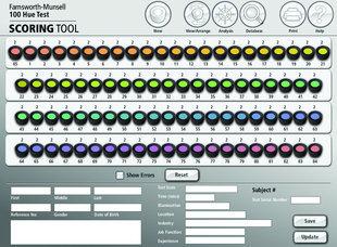Il Farnsworth-Munsell Hue Test Scoring Software è stato sviluppato per accelerare e semplificare il punteggio del FM 100 Hue Test e fornire un potente set di strumenti di analisi amministrative.